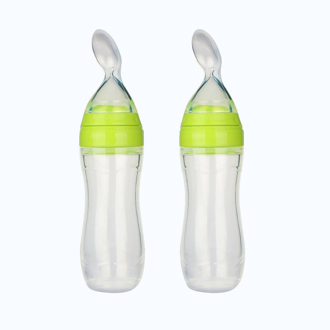 Safe-O-Kid Easy Set of 2 Squeezy Silicone Food Feeder Spoon (Soft Tip) Bottle- Green- 90mL