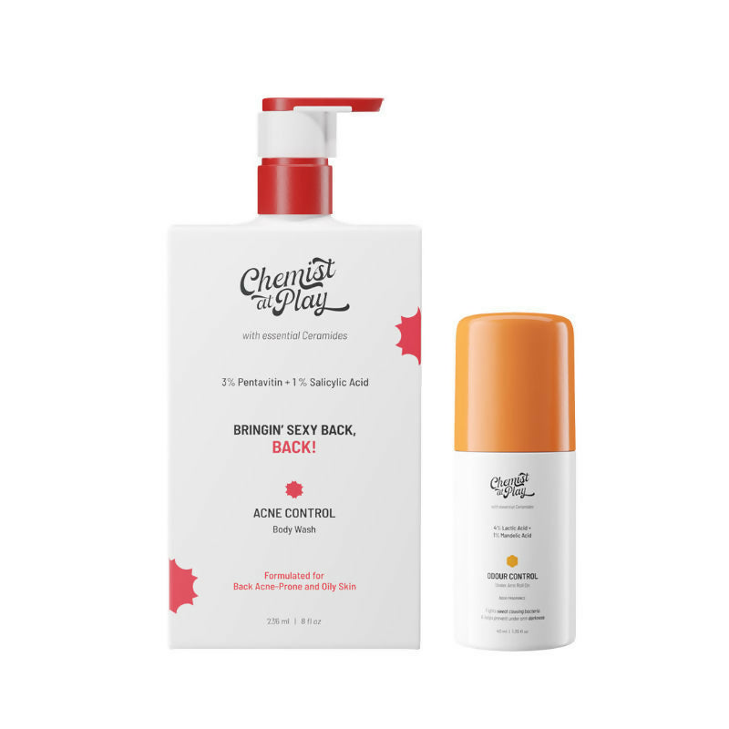 Chemist At Play Salicylic Acid Acne Body Wash & AHA Underarm Roll On Combo