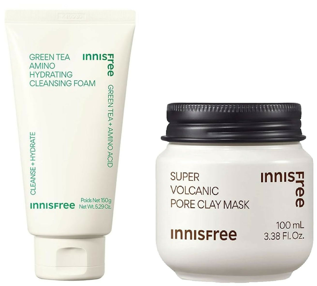 Innisfree Super Volcanic Pore Clay Mask 2X & Green Tea Foam Cleanser Combo