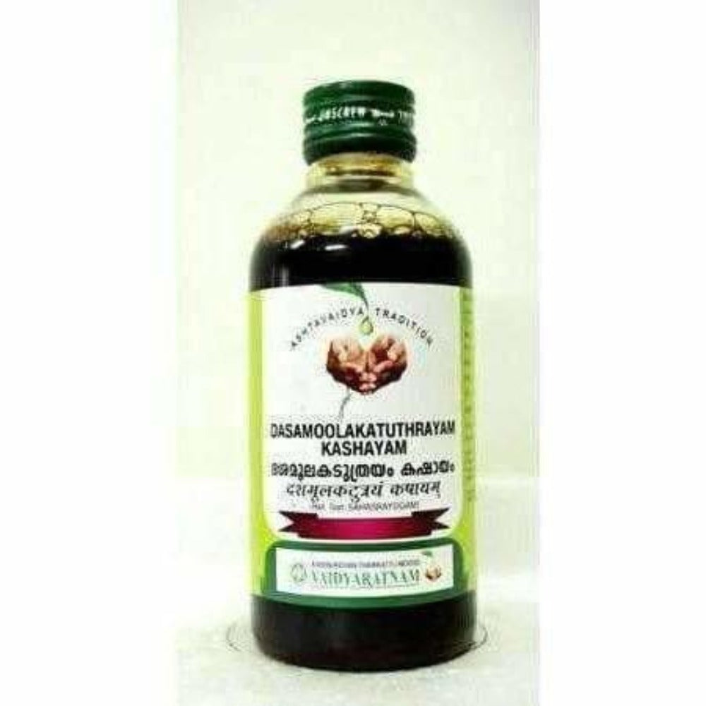 Vaidyaratnam Dasamoolakaduthrayam Kashayam: 200 ml Vaidyaratnam Dasamoolakaduthrayam Kashayam is a traditional Ayurvedic concoction. Form: Liquid...