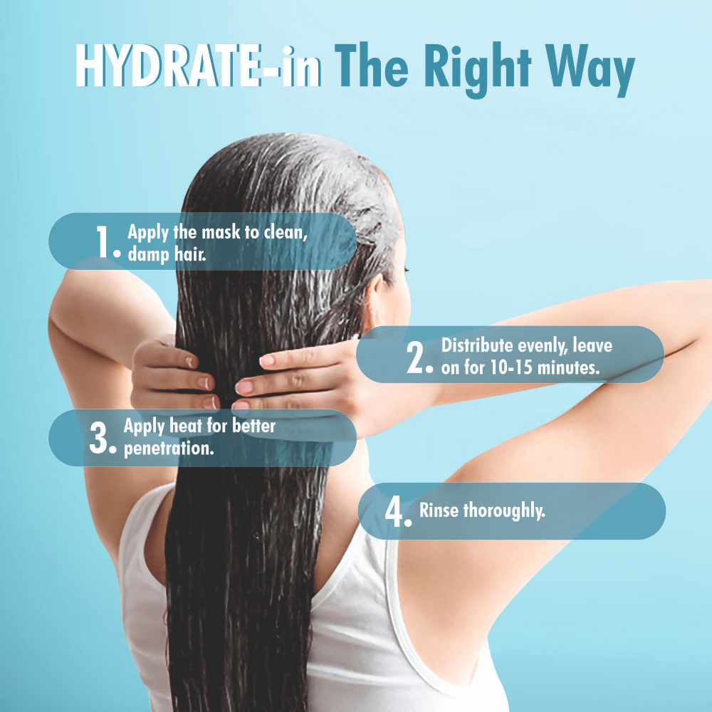 - Apply HydraRevive Nourishing Hair Mask to clean, damp hair. Distribute evenly, leave on for 10-15 minutes. Apply heat for enhanced penetration. Rinse thoroughly.