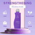 - This expertly formulated blend of Keratin and Collagen aims to rejuvenate dry, brittle, and damaged hair. Keratin, an essential element, reinforces the hair's structure, enhancing its elasticity and smoothness. Collagen, abundant in crucial amino acids, works in harmony with Keratin, creating a powerful combination that fortifies and revitalizes hair with each application. Enriched with Salicylic Acid, it guarantees a clean and healthy scalp. Additionally, Hydrolyzed Silk boosts hair shine, elasticity, and moisture retention, while Hydrolyzed Wheat Protein further nourishes and shields, preventing damage and breakage.