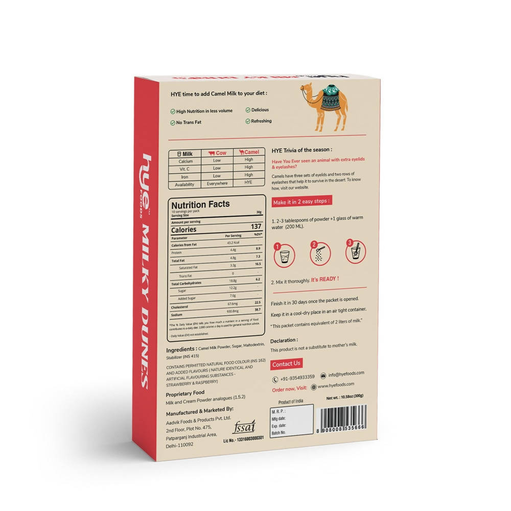 Strawberry Flavor There's no end to the allure of strawberries. HYE Foods offers you premium natural quality, capturing the essence of strawberries in Camel Milk Powder. With the wholesome benefits of Camel Milk and the lush, sweet taste of strawberries, it's truly irresistible.