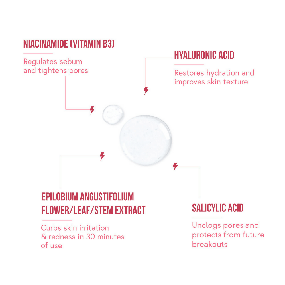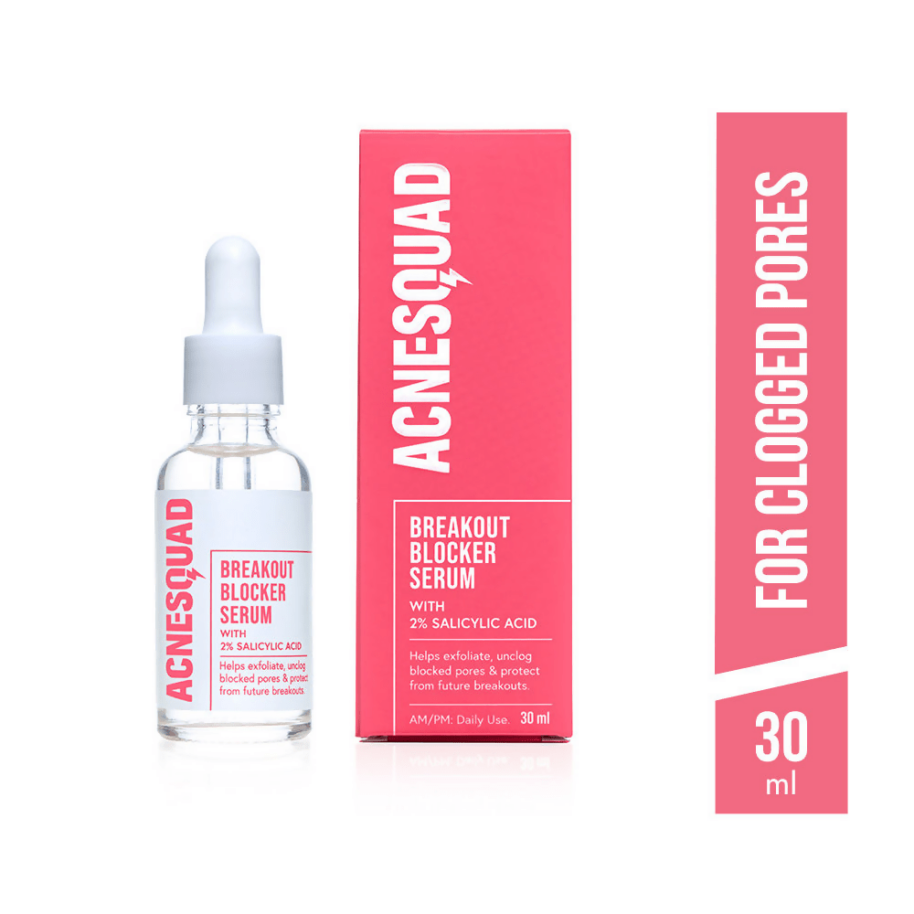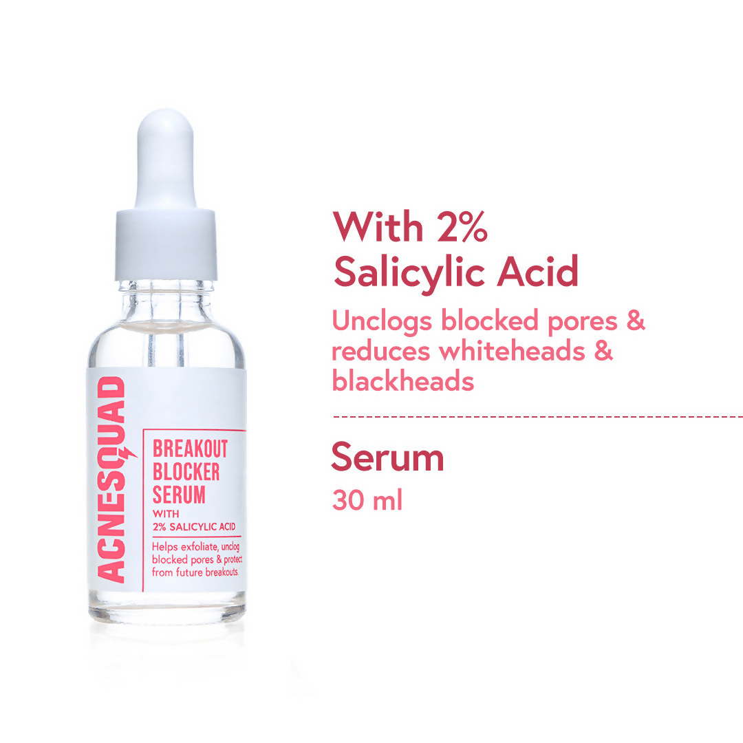 - The Acne Squad Breakout Blocker Serum is crafted with 2% Salicylic Acid to clear obstructed pores while preventing future blemishes.
