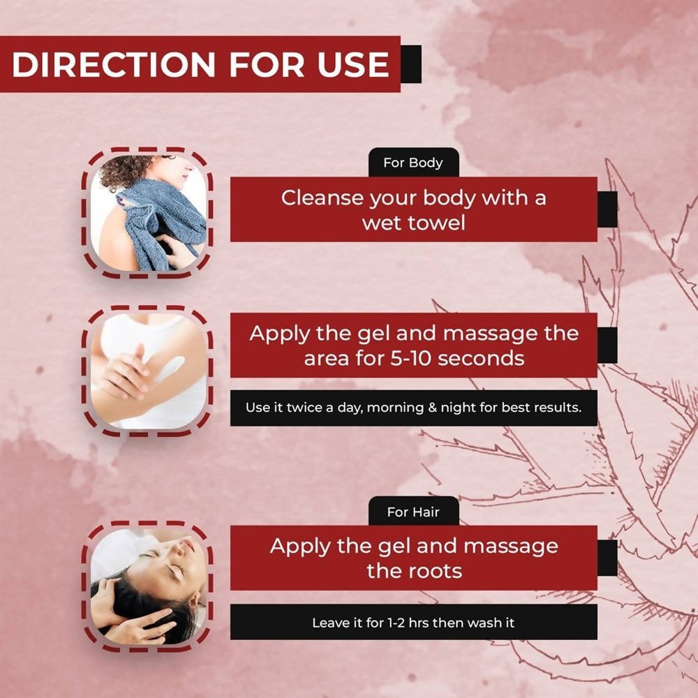 - For Hair, apply the gel and massage into the roots, leave it for 1-2 hours then rinse it out.