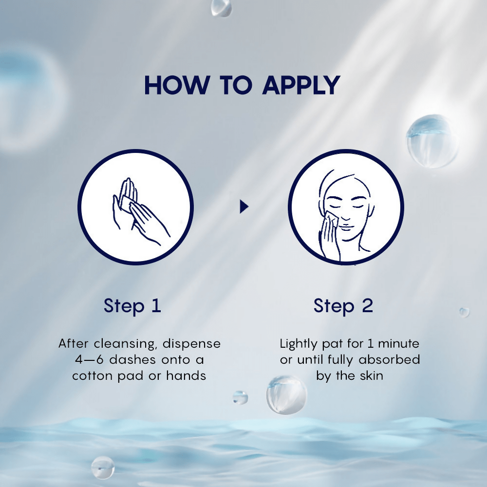 - After cleansing your face, dispense a suitable amount and apply it along the skin's natural lines. Gently pat your face to enhance absorption into the skin.