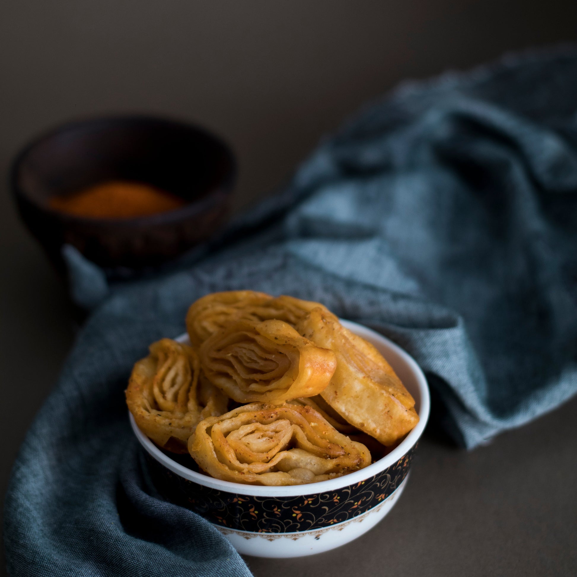 Khara Khaja is a crisp, multi-layered snack with a subtle spice, ideal as an accompaniment to your evening tea or enjoyed on its own.