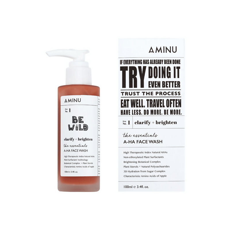 Aminu A-HA face wash is formulated with five natural alpha hydroxy acids that address rough skin and uneven complexion, bestowing a smooth and luminous look. This brightening concoction of antioxidants, rare botanicals, and gentle resurfacing agents effectively lifts impurities while preserving the skin's ideal moisture balance. Suitable for those with oily, dry skin and issues such as dark spots, discoloration, or uneven tone and texture. NOTE: The A-HA Face Wash is unsuitable for highly sensitive or irritated skin due to the presence of alpha hydroxy fruit acids. For such skin types, please opt for the cream cleanser.Features: