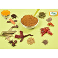 Coriander Seeds, Jeera, Shajeera, Dried Guntur Red Chillies,Kashmiri Red Chillies, Star Anise,Cinnamon, Javitri, Black Cardamom,Net meg,Elachi, Cloves,Bay Leaf and Kasuri Methi