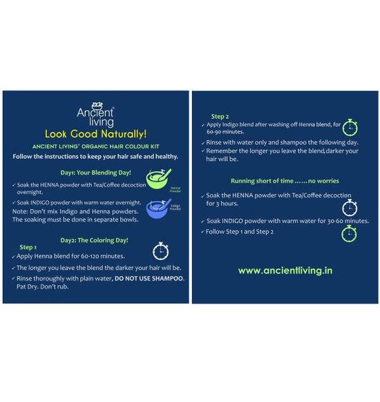 The Ancient Living Organic Indigo Powder is a botanical-based product that imparts a rich black hue when used over henna-treated hair. With its roots in Indian Ayurveda, it serves as a natural dyeing agent. This herbal method colors your hair without harming the hair follicles, unlike synthetic hair dyes.