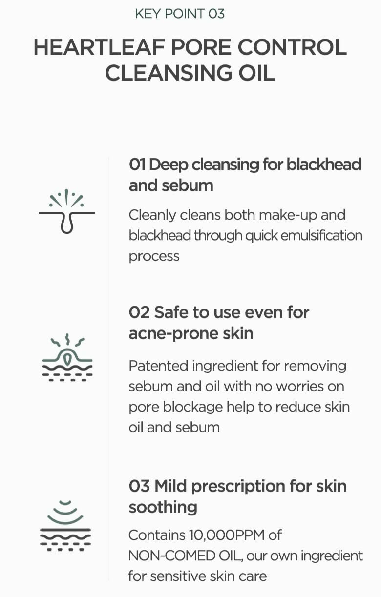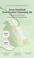 - The ANUA Heartleaf Pore Control Cleansing Oil is your ultimate solution for effective and gentle makeup removal and skincare. Enriched with heartleaf extract, it not only clears away makeup and impurities but also aids in controlling excess oil and reducing pore visibility. Revel in a purified and revitalized complexion with this cleansing oil.