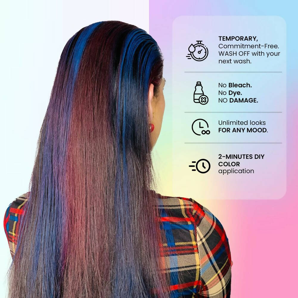 - Why you need it: Changing your hair color is now as seamless as swapping lipstick shades. This DIY application requires no gloves, brushes, or complicated tools - It dries swiftly with a natural finish - Washes out effortlessly in one hair wash - Available in a range of vivid shades - Resistant to transfer and fade - Suitable for all hair types and smells absolutely DIVINE. It is vegan, non-toxic, and completely cruelty-free. Craft your masterpiece and sport your style all day long!