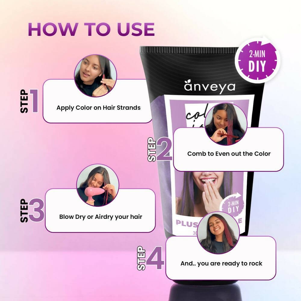 - What it is: Want to infuse your hair with a pop of color and vibrancy without the commitment or damage? Anveya Colorisma Hair Color Makeup is your ideal choice! This instant DIY hair transformation makes it effortless to switch up your locks, bypassing the hassle of bleach. Let your creativity run wild - try streaks, highlights, face-framing pieces, color blocks, and much more. Flaunt your unique style and stand out effortlessly in under 10 minutes. It's that simple.