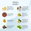 Our body lotion envelops your skin with the rich nourishment of shea, cocoa, mango, and kokum butter, leaving it hydrated, moisturized, and soft. Featuring a refreshing, invigorating scent of eucalyptus and spearmint, this gentle lotion nurtures your skin with 100% nature-derived delight.