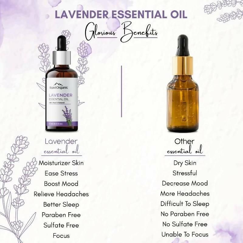 - Lavender oil is renowned as one of the most iconic scents used in aromatherapy, cosmetics, and perfumery. Owing to its diverse therapeutic attributes, lavender stands as one of the most adaptable aromatic plants recognized by humanity. Aravi Organic Lavender Essential Oil is obtained through steam distillation. This lavender oil is of therapeutic grade. A top note with a potent aroma, it exudes a luxuriant floral fragrance that is somewhat fruitier, more mellow, and slightly camphorous.