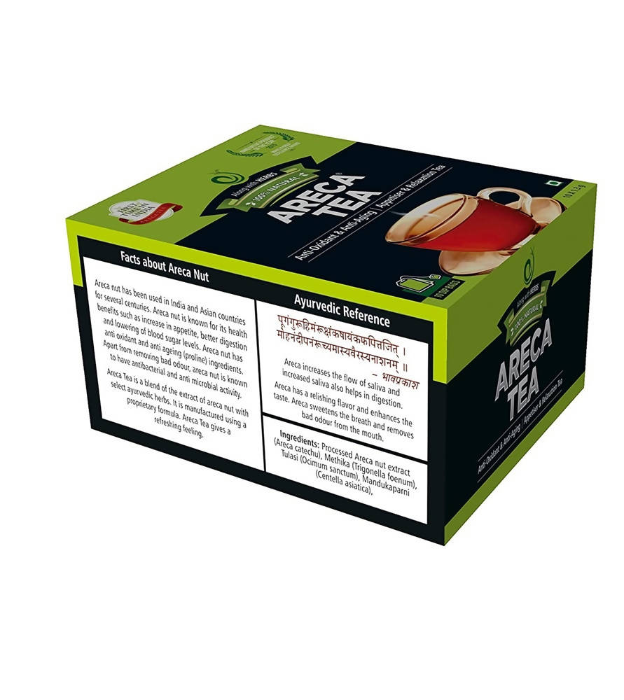 Ingredients: processed areca nut extract (Areca Catechu), methika (Trigonella Foenum), tulasi (Ocimum sanctum), maduka parni (Centella Aslatica)