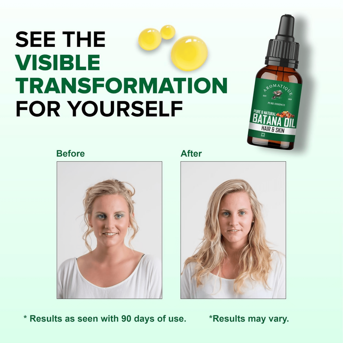 - Pure batana oil coats the hair shaft, enhancing its strength and minimizing breakage. Reinforced hair strands become more resilient to everyday wear and tear, leading to reduced hair loss.