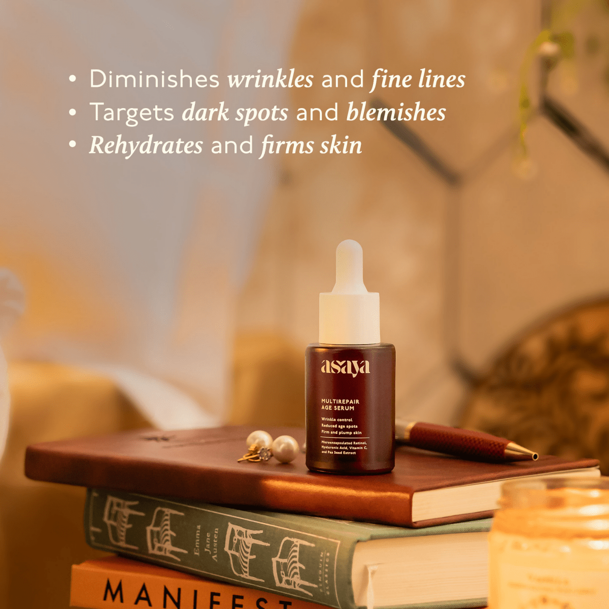 Asaya 0.2% Retinol Peptide Night Serum, Beginner Friendly Anti Aging Face Serum With Vit C