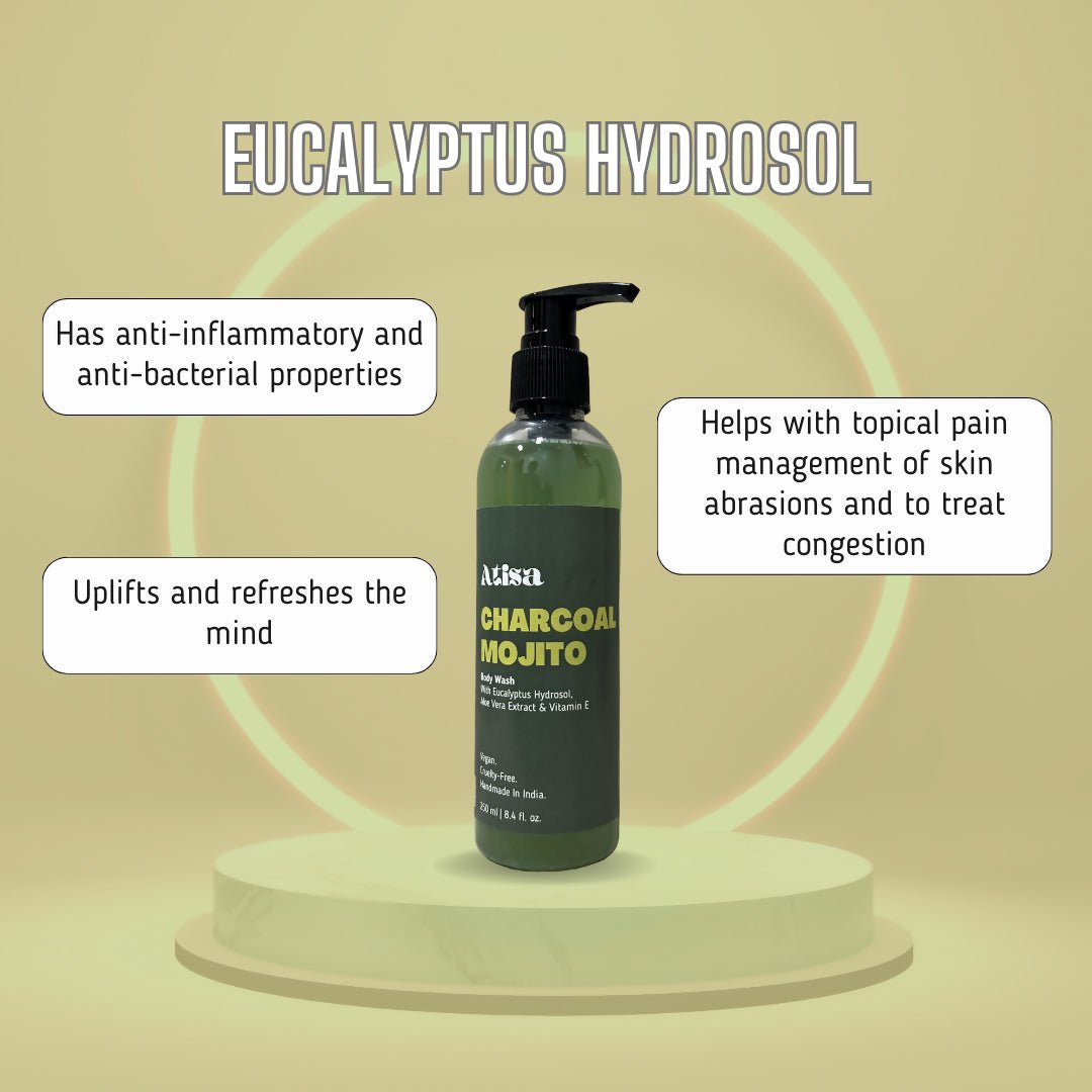 Leave your skin feeling fresh and hydrated with Atisa's collection of body washes for a truly unique and memorable fragrance experience! Crafted with natural hydrosols, that are the gentler version of essential oils but with all the same goodness, they absorb easily into the skin nourishing it from within. Charcoal Mojito is formulated with Eucalyptus Hydrosol, which has anti-bacterial and anti-inflammatory properties, helps with topical pain management of skin abrasions and congestion, and uplifts and refreshes the mind. Along with the added benefits of Vitamin E, Aloe Vera Extract, and Glycerine for maximum skin nourishment!