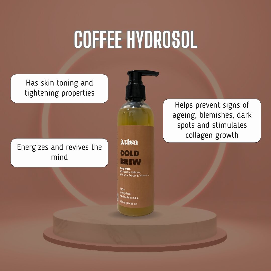 Experience the refreshing and hydrating sensation with Atisa's suite of body washes, offering a distinct and unforgettable fragrance journey! Formulated with natural hydrosols—gentler than essential oils yet equally beneficial—these ingredients are readily absorbed by the skin, providing nourishment from the inside out. The Cold Brew variant includes Coffee Hydrosol, known for its skin-toning and firming qualities, which aids in reducing signs of aging, blemishes, and dark spots while promoting collagen production. It invigorates and refreshes the mind. Additionally, the inclusion of Vitamin E, Aloe Vera Extract, and Glycerine ensures optimal skin nourishment.