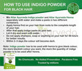 - Our indigo powder is completely pure and natural, free from any chemicals, dyes, or artificial fragrances. It is safe to use on all hair types.