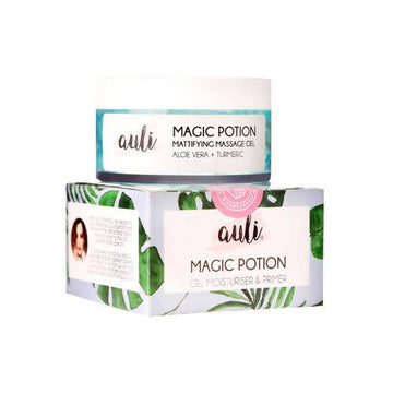 Magic Potion by Auli is a versatile Aloe Vera gel for the face, enriched with turmeric, designed as a non-comedogenic moisturizer perfect for oily skin, while also providing a hydration boost for other skin types. Highly effective for minimizing open pores, reducing excess oiliness, soothing rashes, alleviating allergies, addressing hyperpigmentation, and combating acne & acne scars, rosacea, skin infections, dark spots, and sunburns. This little jar of enchantment nourishes the skin and detoxifies it. It is non-greasy, non-sticky, dries to a matte finish, and can be refrigerated for an extra cooling sensation. Additionally, it serves as a primer for your makeup, providing an even-toned texture, making your skin an ideal canvas for a dewy, natural-looking makeup.