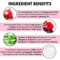 - Pomegranate Peel Extract, Hibiscus Flower Extract, Vitamin C, Turmeric, and Aloe Vera.