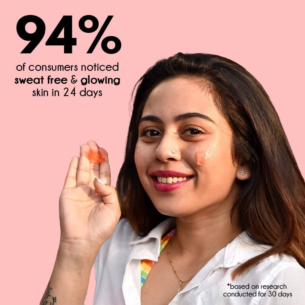 Pomoglow combines the essence of Pomegranate Peel and Hibiscus Flower extract, enriched with Aloe Vera gel and Vitamin C, offering a natural remedy against sun damage and free radicals. Packed with antioxidants, it mends cellular damage and diminishes inflammation. With regular application, this formulation enhances collagen synthesis and addresses early signs of aging. The lightweight, non-sticky gel texture is easily absorbed by the skin, delivering immediate visible effects. It regulates the skin's oil balance and seals in moisture, ensuring your skin remains supple and radiant. Experience an extra burst of freshness and luminosity with Pomoglow.