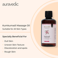 Body glow oil This Kumkuma Body Massage Oil is an exceptionally rich oil with skin-brightening properties. From the iconic Kumkumadi range, this oil increases the skin's glow leaving it luminous and hydrated. Boosting the circulation, the smooth oil simply glides into your skin. The Kumkumadi Tailam penetrates through the skin so the skin remains radiant for a long time. Suitable for all skin types.