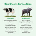 - SPECIALITY: Our Pure Desi Ghee is free from preservatives, Vanaspati, antibiotics, and growth hormones, sourced from cows that are 100% stress-free, grass-fed, and not factory farmed or crossbred, ensuring it is cruelty-free. To maintain the highest quality and taste, we offer A2 Desi Ghee in premium glass jars, providing a safer and non-toxic alternative to plastic.