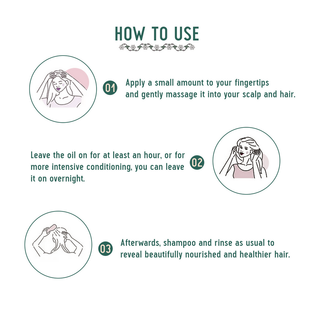 - 1. Apply Oil: Distribute the oil onto your scalp.
