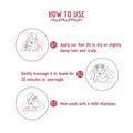 - Step 2: Gently massage it in, leave for 30 minutes or overnight, then wash with a mild shampoo.