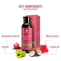 - Hibiscus Flower Oil Soluble Extract, Hibiscus Leaves Oil Soluble Extract, Coconut Oil, Hibiscus Flower Essential Oil, Grape Seed Oil, Pomegranate Seed Oil, Lotus Seeds Oil, Jatamansi Seeds Oil, Saw Palmetto Oil, Curry Leaves Oil, Amla Oil, Green Tea Oil, Lotus Petal Oil, Pumpkin Seeds Oil, Nettle Leaves Oil, Spinach Oil, Vitamin E, Vitamin B12
