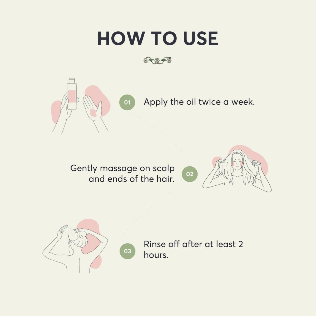- Massage a small amount of oil into your scalp using circular motions.