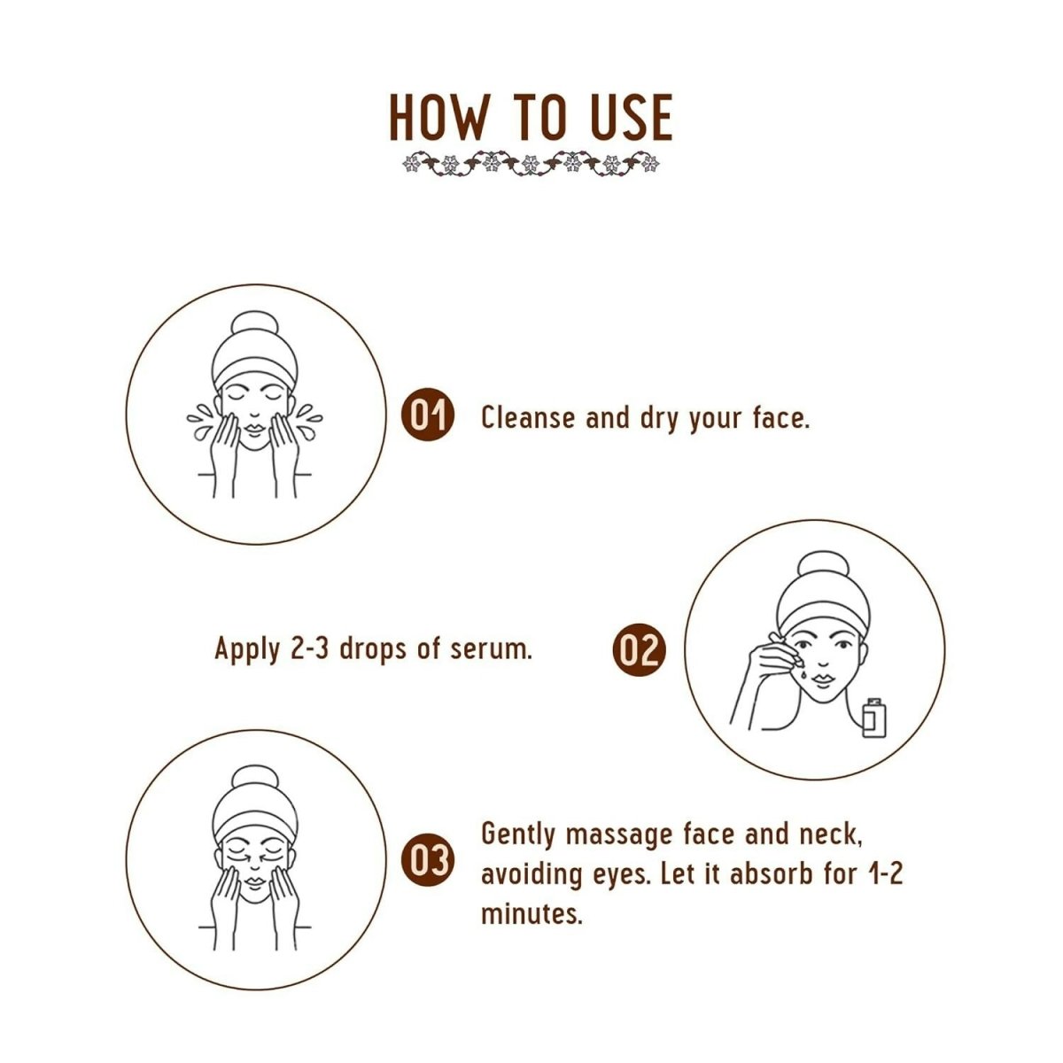 - Cleanse your face, then apply 2-3 drops of serum. Gently massage it onto your face and neck, avoiding eyes. Let it absorb before moisturizing. Use morning and night for best results