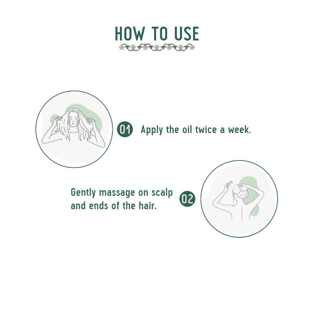 - Distribute the oil uniformly on your hair and scalp using your fingertips. Gently massage. Rinse it out after a minimum of 2 hours.
