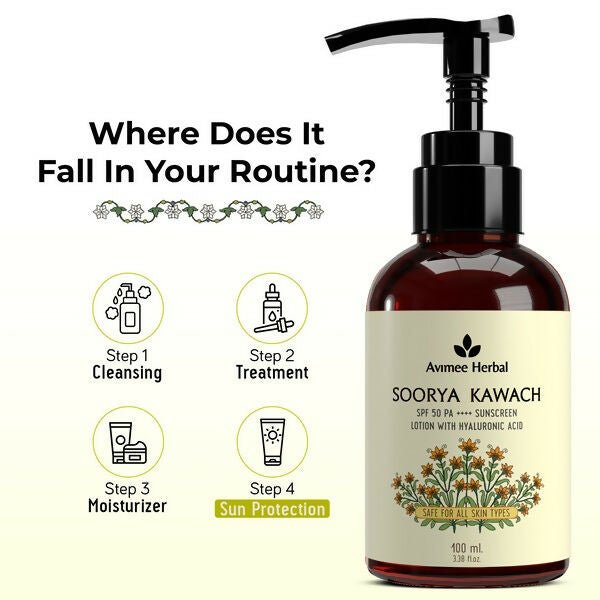 Avimee Herbal Soorya Kawach SPF 50 PA++++ Hyaluronic Acid Sunscreen Lotion
