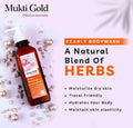 About the Product:- The Mukti Gold Pearly Body Wash offers a mild yet powerful cleansing experience, infused with the nourishing essence of Aloe vera. This body wash is crafted to thoroughly purify and hydrate your skin, leaving it rejuvenated and glowing. Enriched with robust ingredients such as Neem, Papita, and Haldi, it aids in diminishing tanning and enhances skin brightness. Enjoy the calming properties of Aloe vera as it repairs skin from UV exposure and alleviates irritation for a smoother appearance.