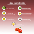 - Aloevera Extract, Gotu Kola Extract, Rosehip Oil, Witch Hazel Extract, Liquorice Extract, vitamin E