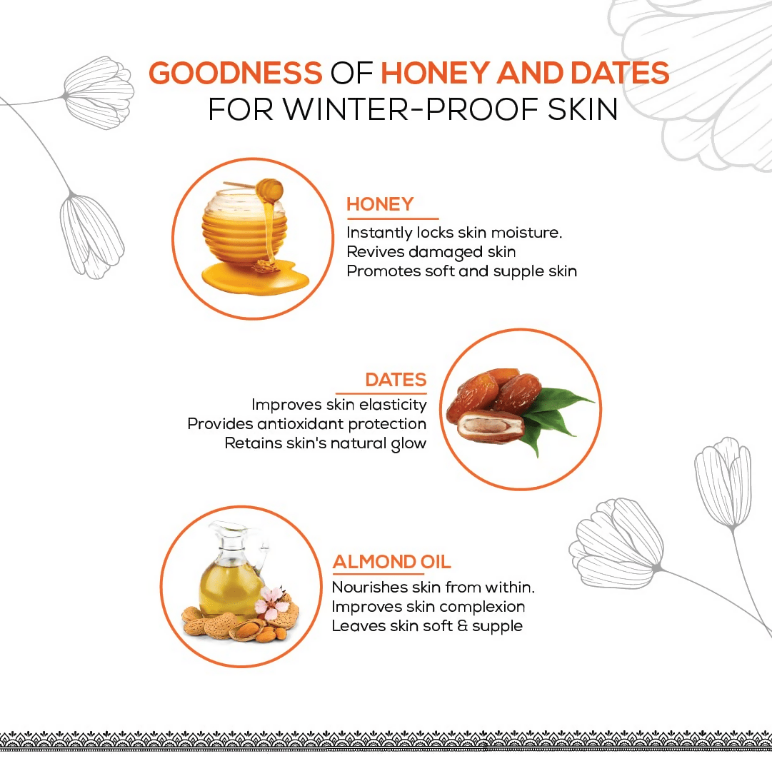 Ayouthveda Dates and Honey Moisturising Cold Cream is devoid of parabens, petroleum derivatives, silicone, and synthetic dyes. It includes honey to repair damaged and dry skin and dates to deliver antioxidant defense along with deep nourishment to the skin.
