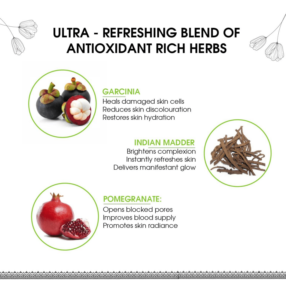 This invigorating foaming face wash, infused with the essence of traditional Ayurveda, delivers thorough cleansing combined with deep hydration. Its luxurious lather rejuvenates the skin, thanks to an exquisite blend of herbs including Rose, Lotus, Mexican marigold, and peppermint. Enhanced with Garcinia and green tea, known for their powerful antioxidant properties, it naturally illuminates the skin tone, ensuring your skin remains smooth and revitalized throughout the day.