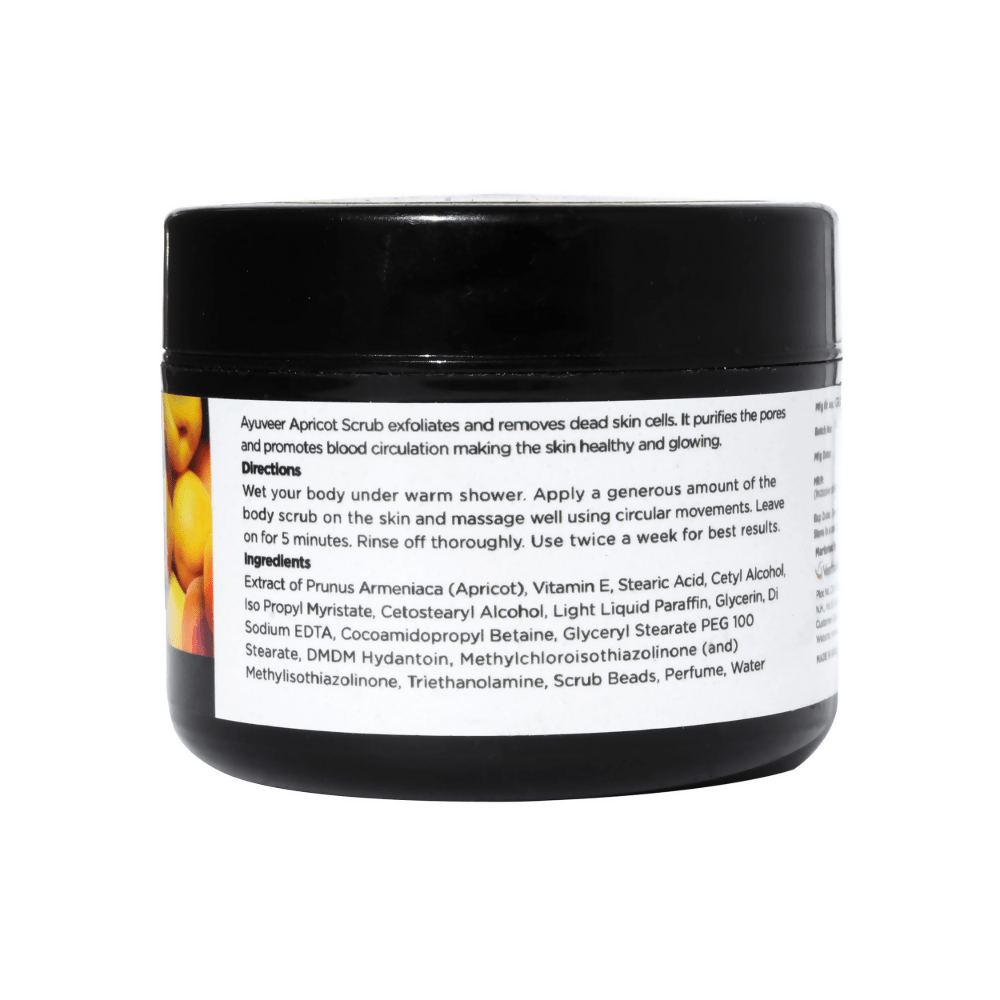 Ayuveer Apricot Scrub gently exfoliates and eliminates dead skin cells. It cleanses the pores and enhances blood circulation, resulting in skin that is healthy and radiant.