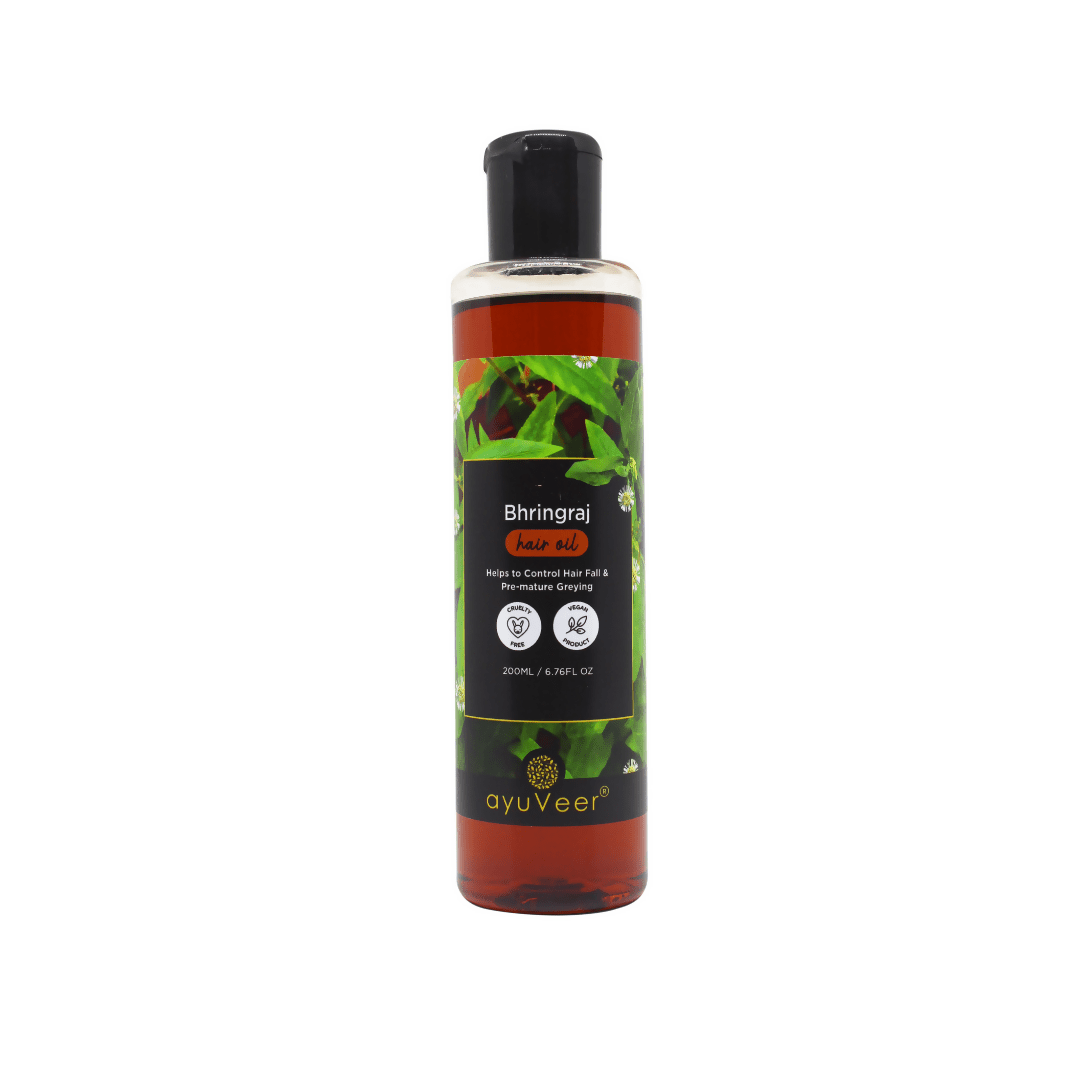 Ayuveer Bhringraj Hair Oil is enriched with the benefits of natural elements like Amla, which delivers comprehensive nourishment to your hair, enhancing its strength and vitality. The Ayuveer Hair Oil Range also assists in addressing and reducing hair concerns such as hair loss, dandruff, and early greying.