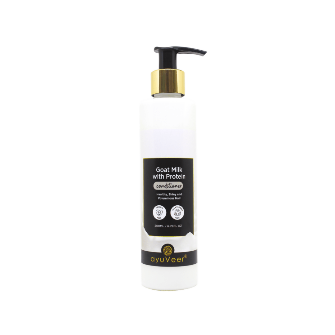 The Ayuveer Goat Milk with Protein SLS & Paraben Free Conditioner features a distinct fusion of goat milk powder and potent herbal extracts designed for optimal hair care. It promotes healthier, shinier, and more voluminous hair. This conditioner minimizes hair breakage and loss thanks to its protein content, while the goat milk powder ensures all-day hydration for your locks.