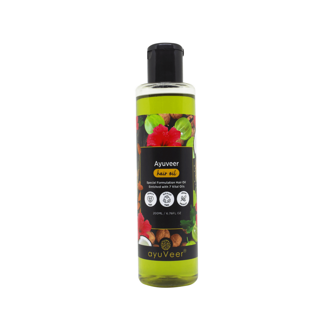 Ayuveer Hair Oil is crafted with the richness of natural components like Amla, which delivers comprehensive nourishment to your hair, fortifying them to be robust and healthy. The Ayuveer Hair Oil Collection also aids in addressing and reducing hair issues such as hair loss, dandruff, and early greying.