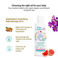 - BabyChakra’s Nourishing Baby Massage Oil features a distinctive blend of USDA Certified Organic and 100% Natural Oils that deeply nurture your baby’s skin. It also possesses remarkable calming properties that enhance the skin's protective barrier.