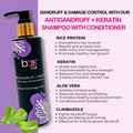 The Baes Club Anti Dandruff + Keratin Shampoo features a dual-action formula crafted to combat dandruff while mending damaged hair. This product includes a built-in conditioner, is free from soap, and possesses a lower pH level, ensuring a gentler cleansing experience and suitability for frequent use.