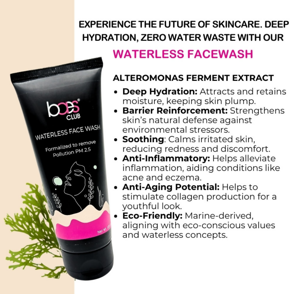 Baes Club Waterless Face Wash is crafted to eliminate contaminants such as PM 2.5 without requiring water. It boasts an advanced formulation enriched with Alteromonas extract, lecithin, and sodium acrylate copolymer, ensuring effectiveness while being completely alcohol-free.