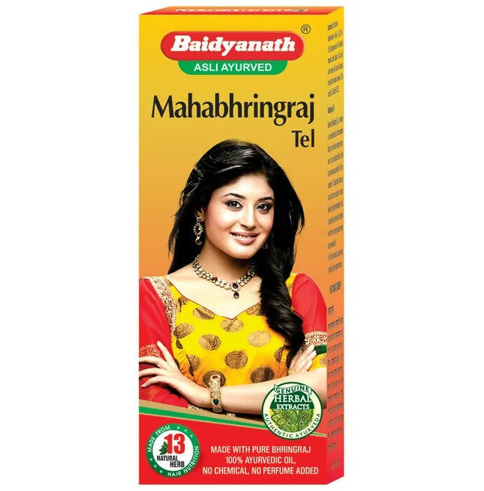 - Baidyanath (Jhansi) Mahabhringraj Tel is a natural oil crafted from 27 herbs and components designed to promote a revitalized scalp. It addresses common hair concerns such as hair loss, dandruff, bacterial infections, and dry scalps. The oil also aids in minimizing early graying and curbing baldness. It boasts numerous health advantages and is free from silicone, preservatives, chemicals, or artificial fragrances.