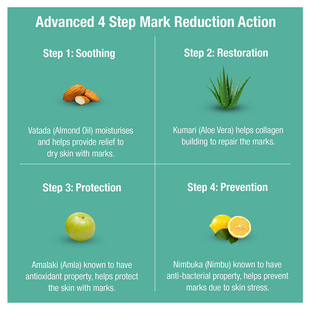 - Step 2 - Restoration: This cream includes a restorative element, kumari (aloe vera), which aids in collagen synthesis to mend skin marks.